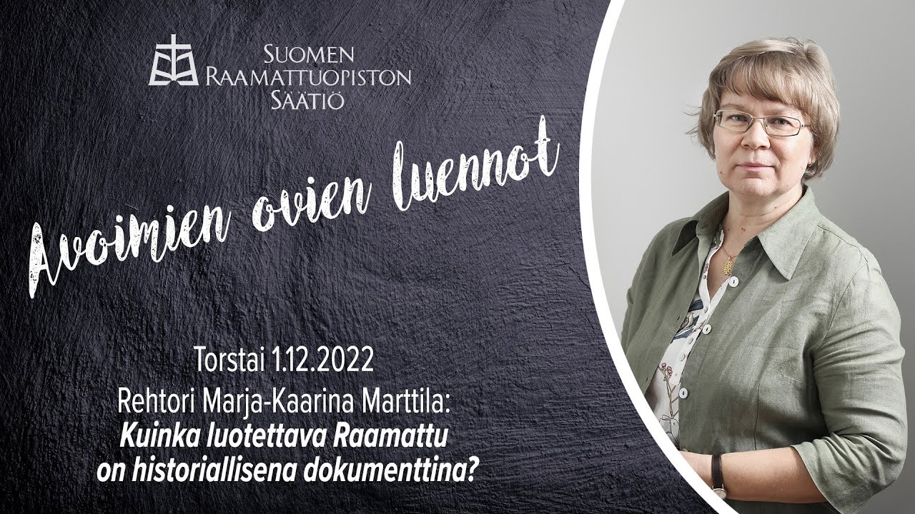 Avoimet ovet: Kuinka luotettava Raamattu on historiallisena dokumenttina? - Marja-Kaarina Marttila – Avointen ovien yleisöluennot video | Media316